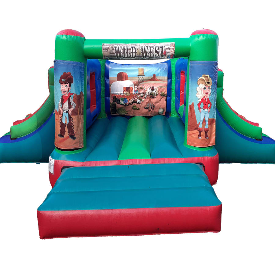 Looking to add a touch of the Wild West to your event? Our bouncy castle in Billingshurst, Alton, Hayling Island, Worthing, Rustington, Fratton, and surrounding areas is the perfect solution! We provide top-notch service and ensure that your bouncy castle is delivered, set up, and ready for action on time, every time. Whether you're hosting a birthday party, a community event, or a school fair, our Wild West Bouncer Double Slide will be the highlight of the day.