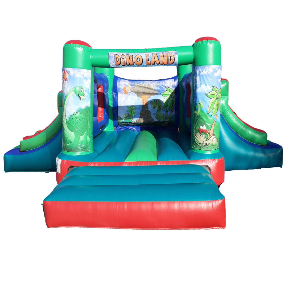 Step back in time and unleash the fun with our Dino Land Bouncer Double Slide, a thrilling bouncy castle that promises to bring the prehistoric era to life! Perfect for dinosaur enthusiasts of all ages, this inflatable wonderland is designed to captivate imaginations and provide hours of bouncing joy. Whether you're planning a birthday party, community event, or just a fun day out, the Dino Land Bouncer is the ultimate attraction.