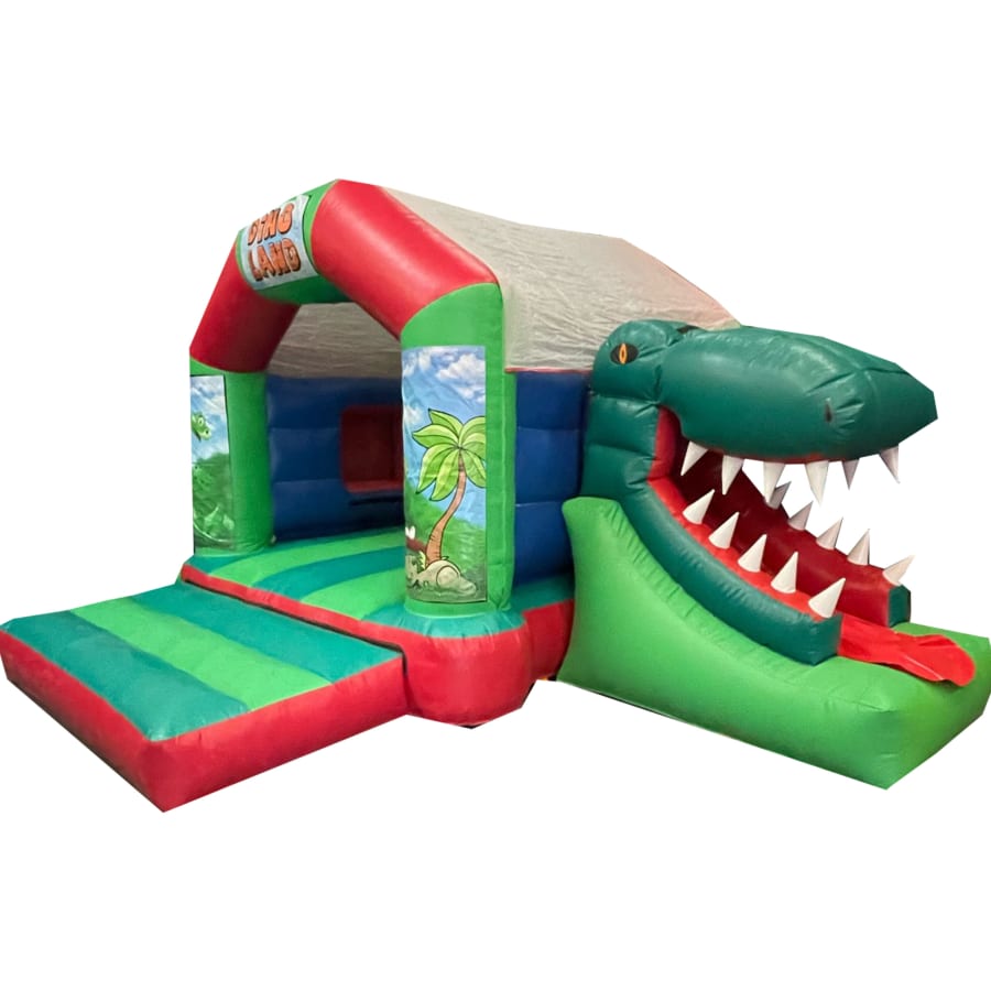 Don't miss out on the chance to make your next event a roaring success with the 3D Dino Land Combi. With its dynamic design and exciting slide, it’s the perfect way to keep everyone entertained and engaged. Book now and watch as your party transforms into a dinosaur wonderland!