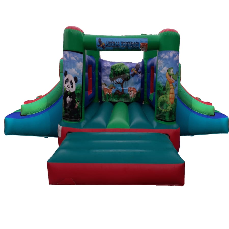 Looking for the perfect way to add a splash of fun and excitement to your child's party? Look no further than the Animal Kingdom Bouncer Double Slide! This vibrant and colourful bouncy castle is adorned with delightful animal characters, including tigers and crocodiles, making it the ideal choice for younger children. With its neutral design, it seamlessly fits into any party theme, ensuring endless hours of joy and laughter for the little ones.
