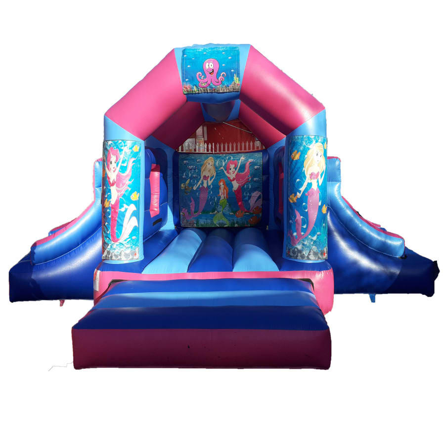 Transform your child's party into an undersea adventure with our enchanting Mermaid Bouncer Double Slide. Featuring delightful mermaids and their fishy friends, this bouncy castle is perfect for creating magical memories. Whether you're hosting a birthday party, a family gathering, or a community event, the Mermaid Bouncer Double Slide is sure to bring waves of joy and excitement to all your guests.