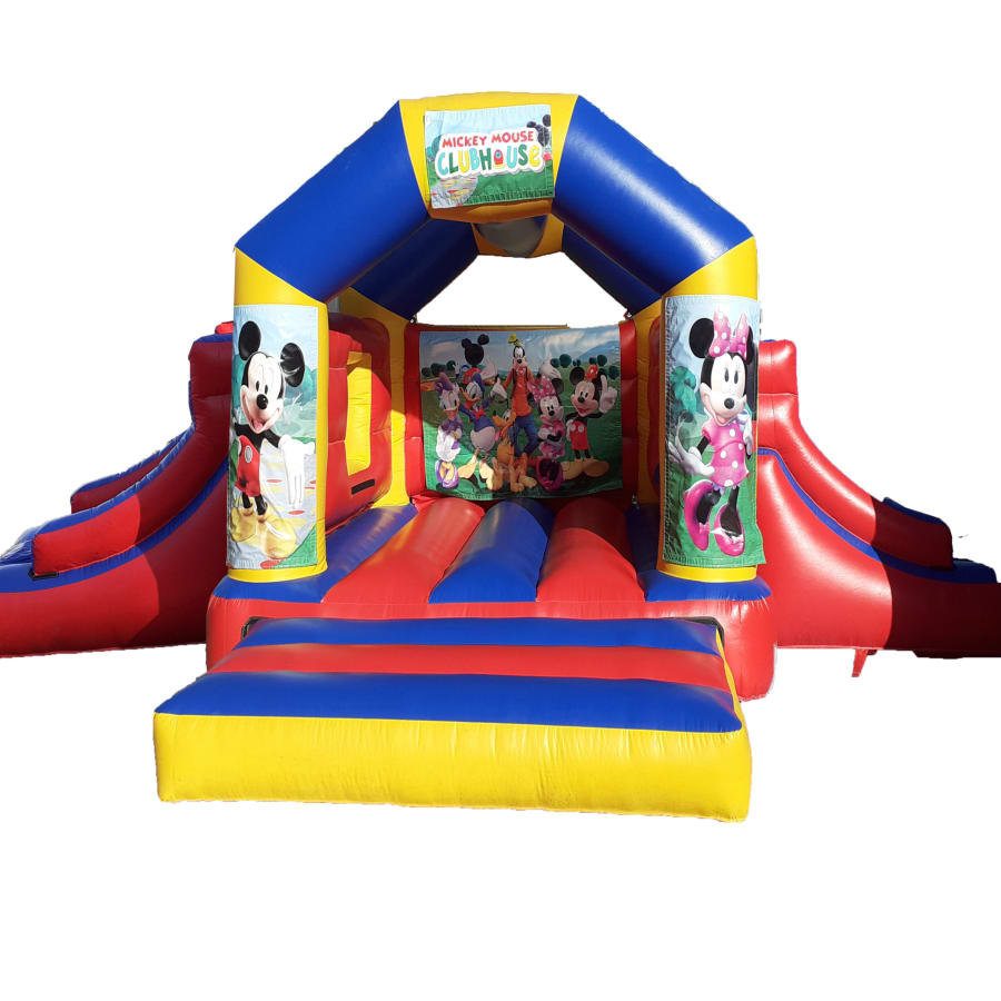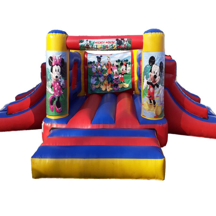 Don't miss out on the opportunity to make your event extra special. Contact us today to reserve the Mickies Club Bouncer Double Slide and let the fun begin! Our friendly team is ready to assist you with all your bouncy castle hire needs.📞