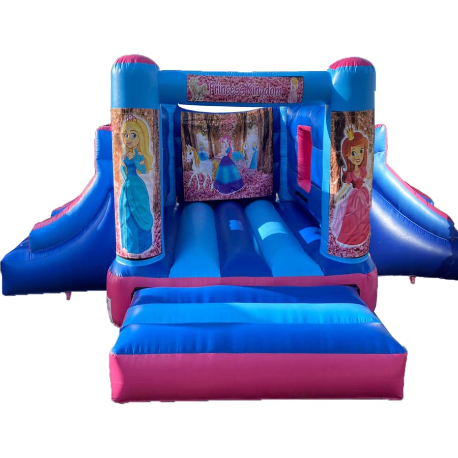 Step into a world of enchantment and wonder with the Princess Kingdom Bouncer Double Slide, where dreams come true! Perfectly designed for little princesses, this bouncy castle is adorned with delightful woodland scenes featuring princesses and their adorable pet unicorns. It's the ultimate magical adventure that will captivate the hearts of children and make any event unforgettable. 🌟