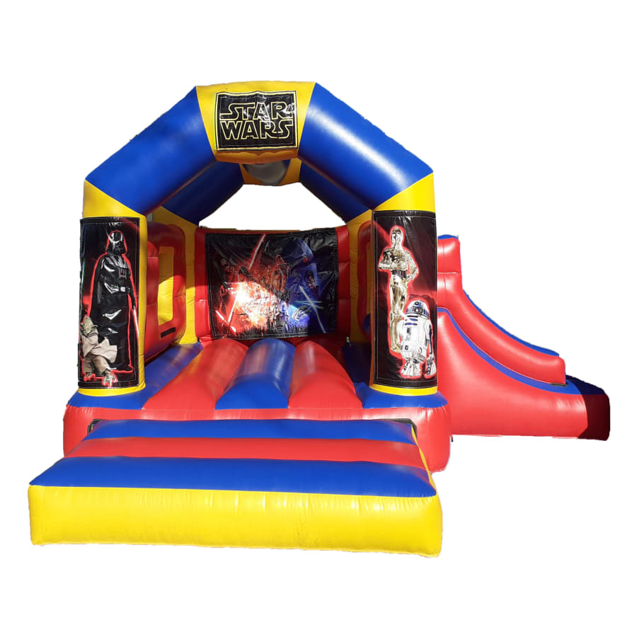 Our bouncy castle hire in Chichester, Arundel, Steyning, Hove, Rustington, Havant and surrounding areas ensures that you can enjoy the Starwars Bouncer Single Slide no matter where you are. We provide prompt delivery and setup, allowing you to focus on having fun and making memories. 🌟