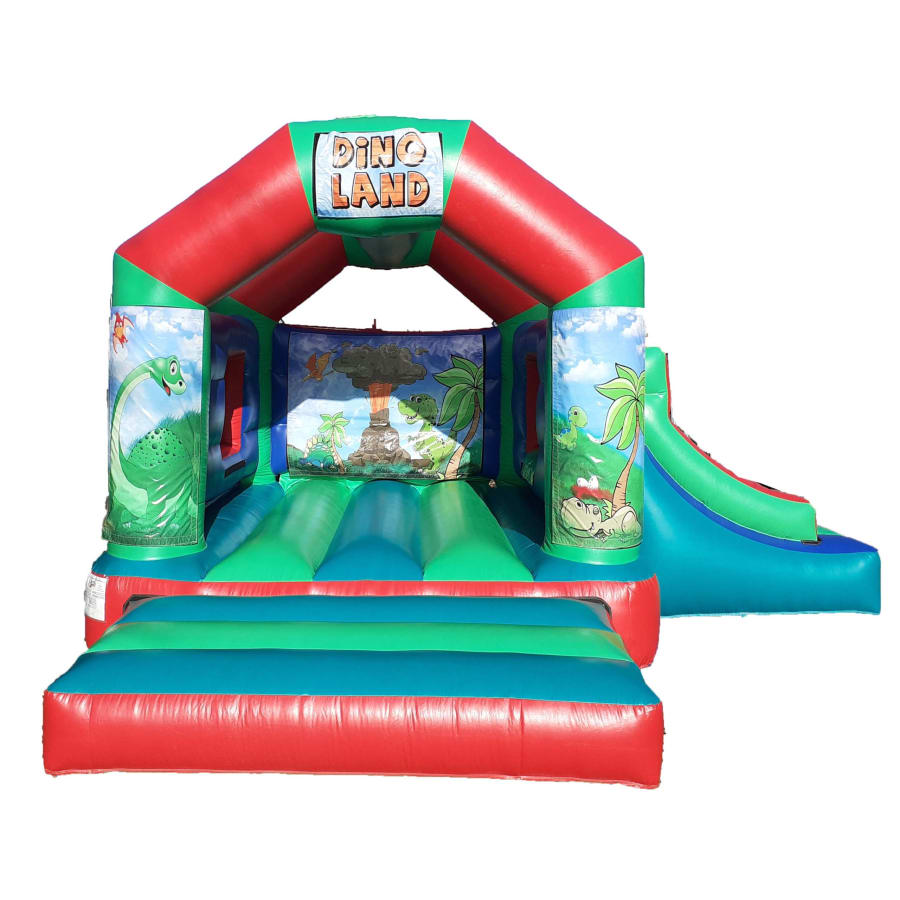 Let the dinosaurs roar and the fun soar with the Dino Land Bouncer Single Slide! 🎉